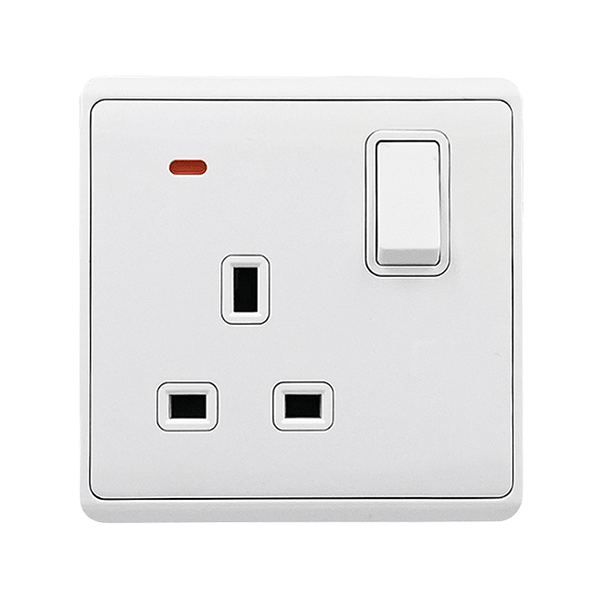 LONDON SINGLE SOCKET WITH 2P BUTTON SWITCH NEON WH