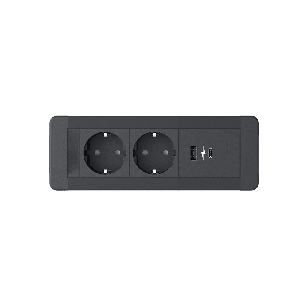 SLIM FRAME 2xSHUKO SOCKET+1xUSB A/C 20W, BLACK