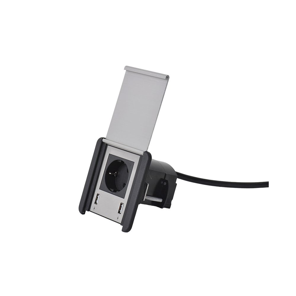 STAND UP 2xSHUKO SOCKET+1xUSB A/C 20W, BLACK/INOX