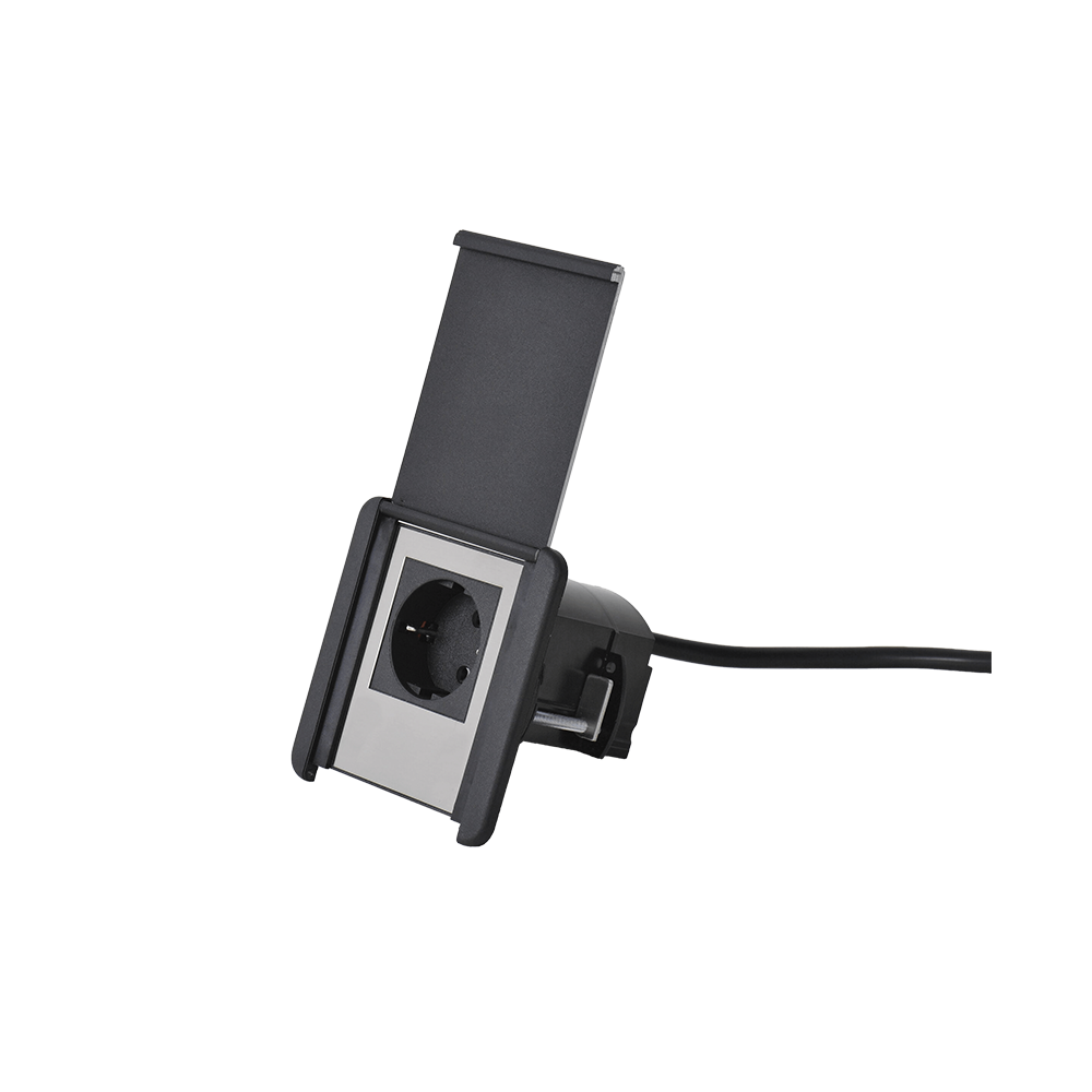 SOURCE COVER 1xSHUKO SOCKET 16A WITH COVER BLACK/INOX/BLACK